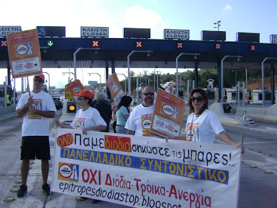Οι πολυεθνικές εταιρίες με την αγαστή συνεργασία τών κυβερνώντων, συνεχίζουν να προκαλούν το κοινό αίσθημα των πολιτών αυτής της χώρας: Επανειλημμένες καταγγελίες παίρνουμε από πολίτες που περνούν τα διόδια για ανάγωγη, προκλητική και παράνομη συμπεριφορά των υπαλλήλων και των υπευθύνων στα διόδια. Αρνούνται να τηρήσουν την διαδικασία που προβλέπεται ακόμη από τις αποικιοκρατικού τύπου συμβάσεις τους, που ορίζουν ότι: οταν υπάρχει άρνηση πληρωμής τότε πρέπει να φωτογραφηθεί ο αριθμός του αυτοκινήτου και αμέσως μετά η μπάρα σηκώνεται και ο οδηγός φεύγει. Σε καμμία περίπτωση δεν νομιμοποιούνται να παρεμποδίζουν και μάλιστα με εκβιαστικές απειλές, την ελεύθερη διέλευση των αρνούμενων να πληρώσουν το χαράτσι, συμπολιτών μας. Η παρεμπόδιση αυτή συνιστά , εκ μέρους της εταιρίας, το αυτόφωρα διωκόμενο αδίκημα της παράνομης κατακράτησης και της παρακώλυσης των συγκοινωνιών. Να ξέρουν , εταιρίες και κυβερνώντες, ότι τα πρόβατα ξύπνησαν. Τέρμα πια το άρμεγμα. Δεν θα πληρώσουμε εμείς την κρίση τους. Γιατί δεν τα φάγαμε μαζί! Οι πολίτες θα προβαίνουν εκτός των άλλων σε μηνύσεις εναντίον κάθε υπευθύνου για παράνομη κατακράτηση και παρακώλυση συγκοινωνιών. Καλούμε τους συμπολίτες μας να μην εμπλέκονται σε ανώφελες συζητήσεις με τους υπαλλήλους, οι οποίοι έχουν εντολές για σκόπιμη καθυστέρηση. Να σπρώχνουν την μπάρα προς τα μπρός , σαν να ανοίγουν μία πόρτα και να διέρχονται ελεύθερα πηγαίνοντας στο σπίτι, στην δουλειά τους ή όπου αλλού θέλουν. Γιατί αυτοί οι δρόμοι είναι δικοί μας, τους έχουμε χιλιοπληρώσει από την εποχή των παπούδων και των πατεράδων μας και δεν μας ρώτησε κανένας όταν τους παραχώρησαν στους μεγαλοεργαλάβους ντόπιους και ξένους. ΣΗΚΩΝΟΥΜΕ ΤΙΣ ΜΠΑΡΕΣ- ΟΛΟΙ ΣΤΟΥΣ ΔΡΟΜΟΥΣ ΓΙΑ ΤΗΝ ΕΛΕΥΘΕΡΙΑ!